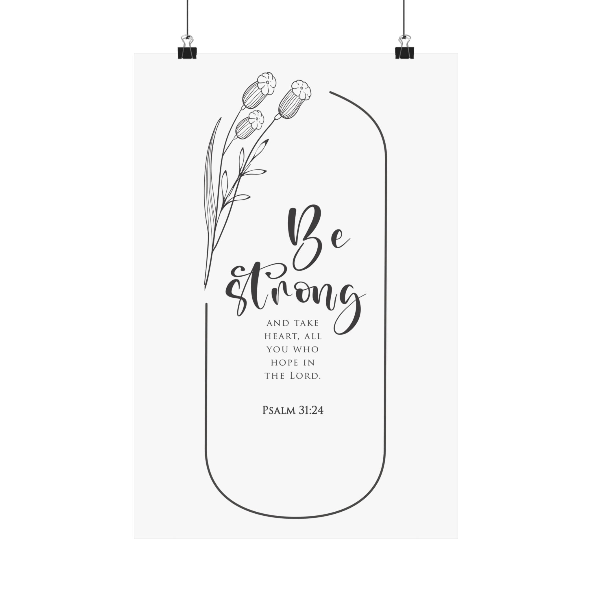 Faith Culture Be Strong And Take Heart Psalm 31:24 Christian Matte Poster | Minimal Typography Scripture Wall Art Print