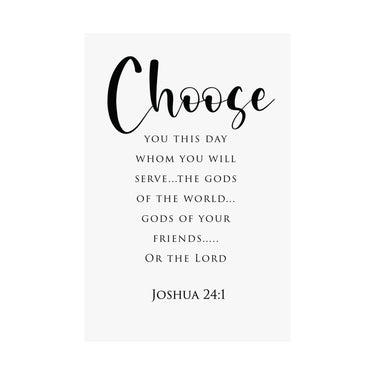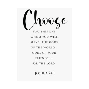 Clear and convicting, this matte vertical poster centers on the word “Choose” with a faith filled call to serve the Lord. Designed in clean, minimalist typography, it’s a daily reminder to live intentionally and keep your heart aligned with God.