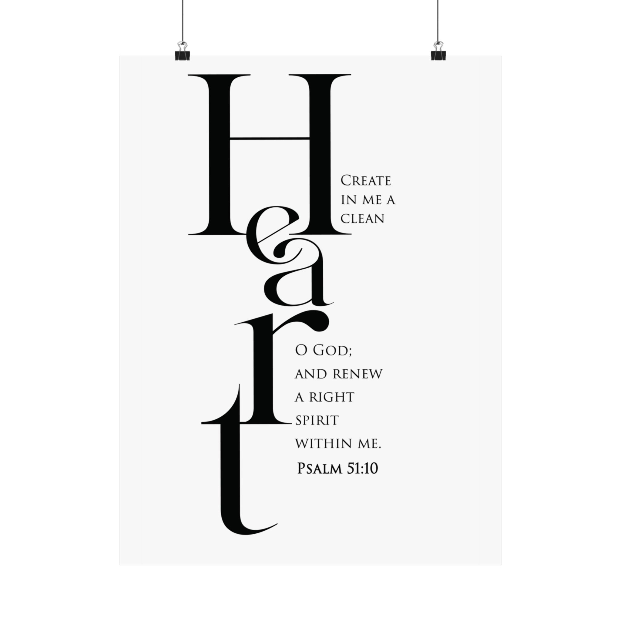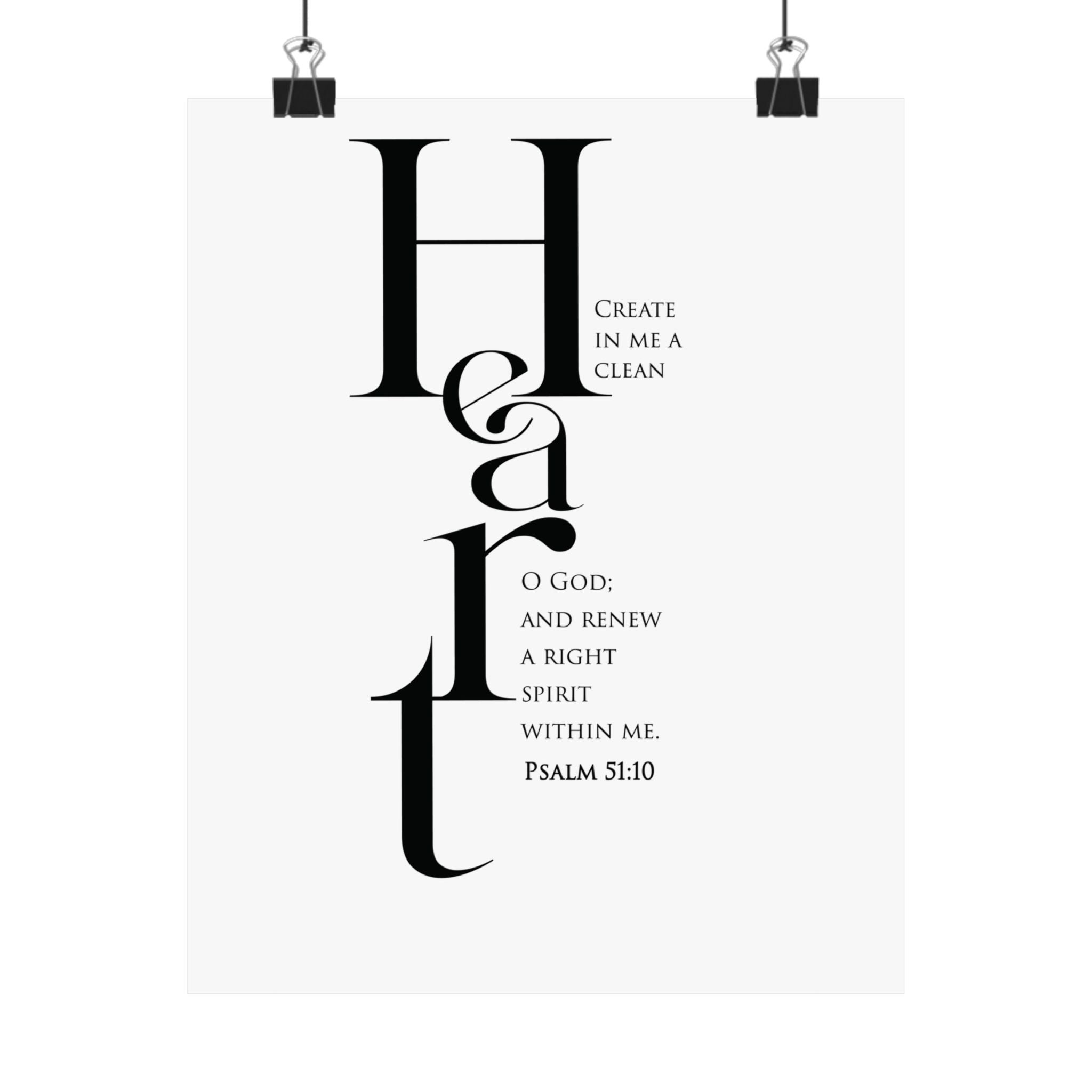 Faith Culture Create in Me a Clean Heart Psalm 51:10 Christian Matte Poster | Minimal Scripture Wall Art Print