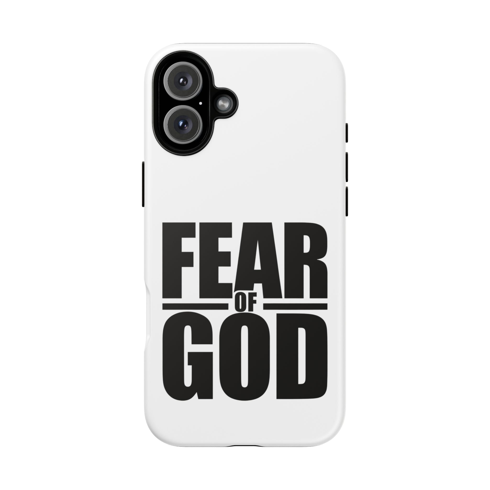 Honor the awe-inspiring majesty of the Lord with our “Fear of God” Christian Tough Phone Case from Faith Culture. Inspired by the biblical call to reverence, this striking design features bold, angular typography that reminds you to hold God in highest esteem every day. Crafted with a durable dual-layer build, it helps protect your phone from routine drops, scratches, and bumps—perfect for anyone seeking to combine faith-driven style with reliable defense.