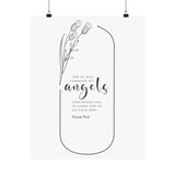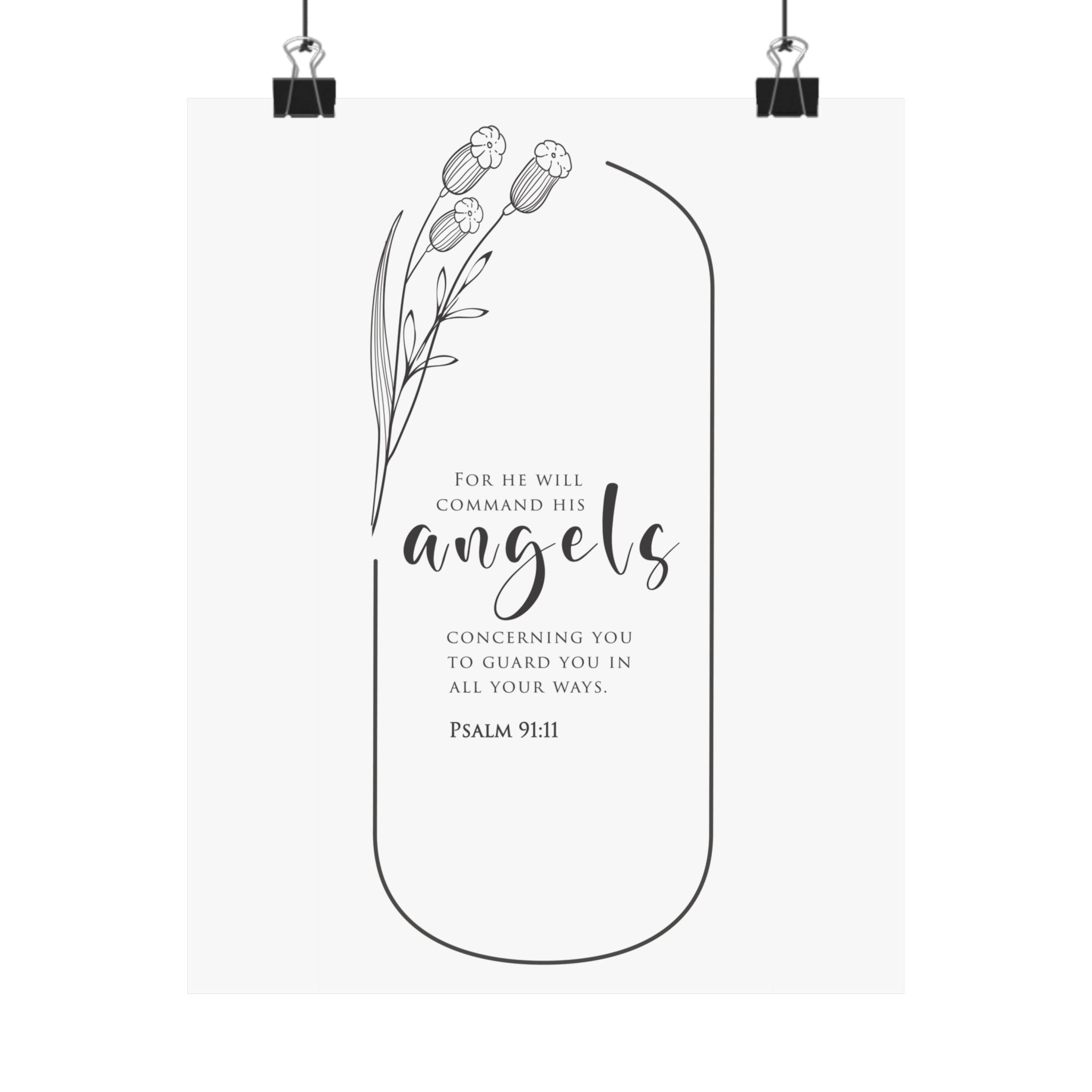 Faith Culture He Will Command His Angels Psalm 91:11 Christian Matte Poster | Minimal Floral Scripture Wall Art Print