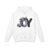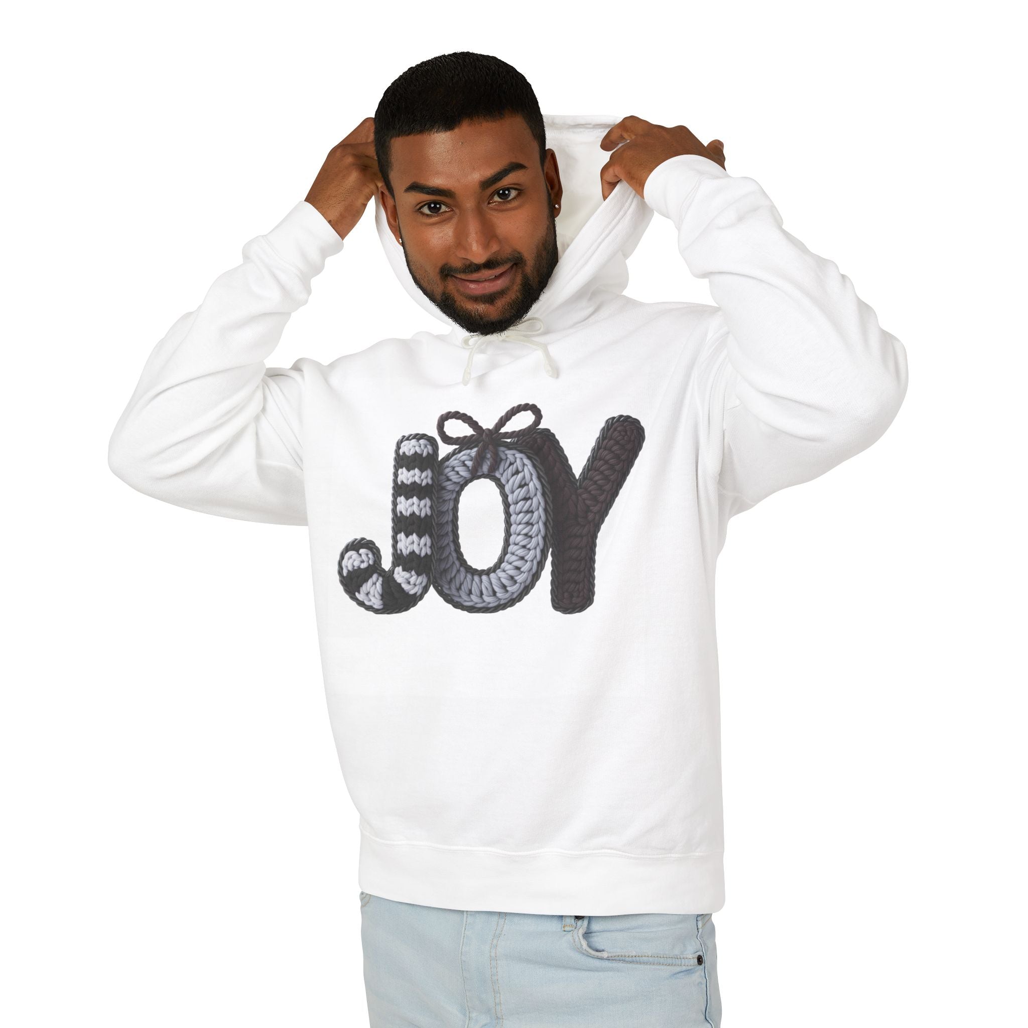 Faith Culture - JOY Knit Letters Unisex Christian Hoodie – White | Minimal Christmas Sweatshirt