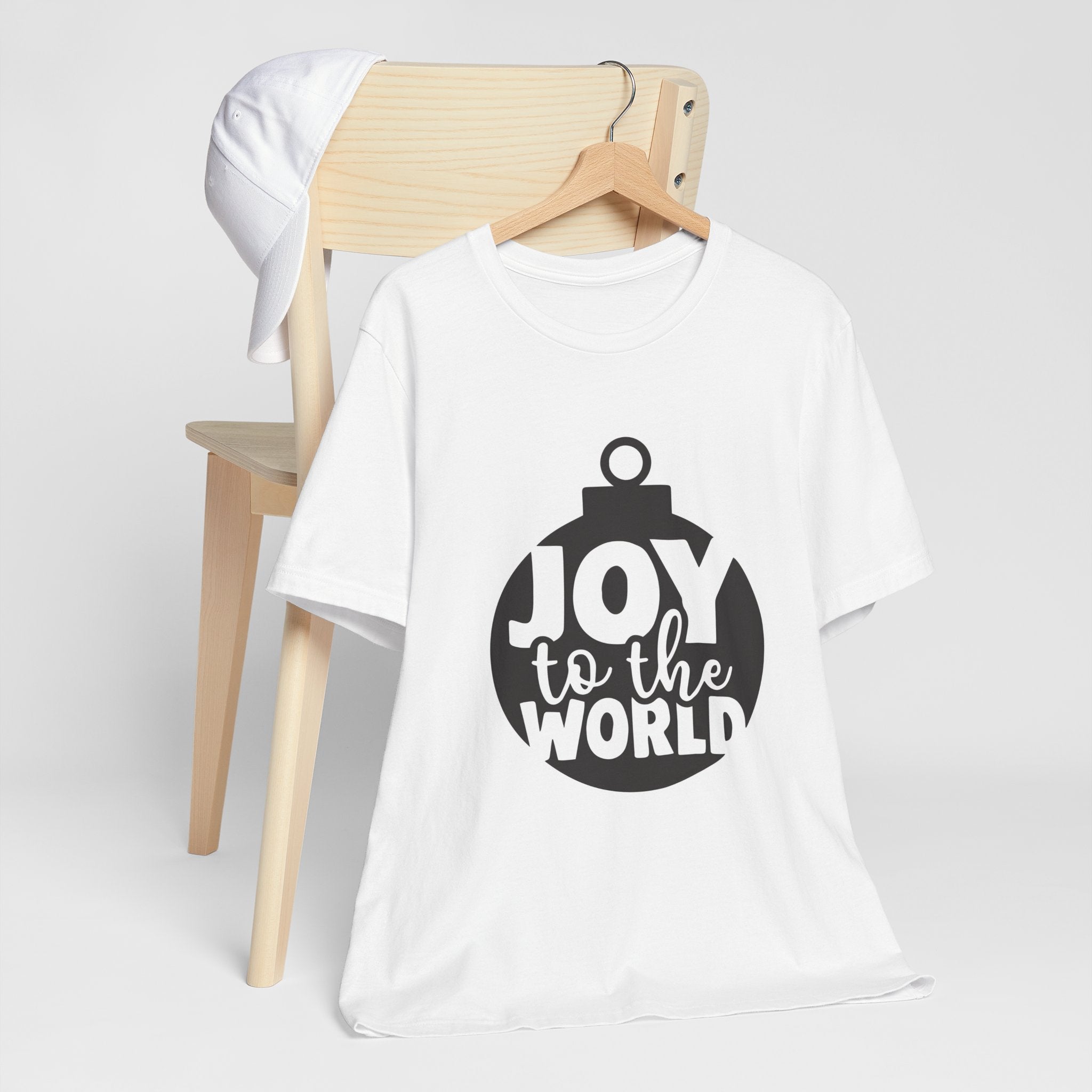 Faith Culture - Joy to the World Ornament Christian Christmas T-Shirt – White | Minimal Bauble Holiday Tee