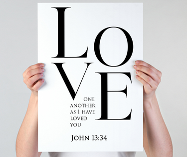 Clean and heartfelt, this matte vertical poster features “LOVE” in bold modern typography, paired with John 13:34. The simple black and white design keeps the message front and center, making it a beautiful daily reminder to live out Christlike love at home and beyond.