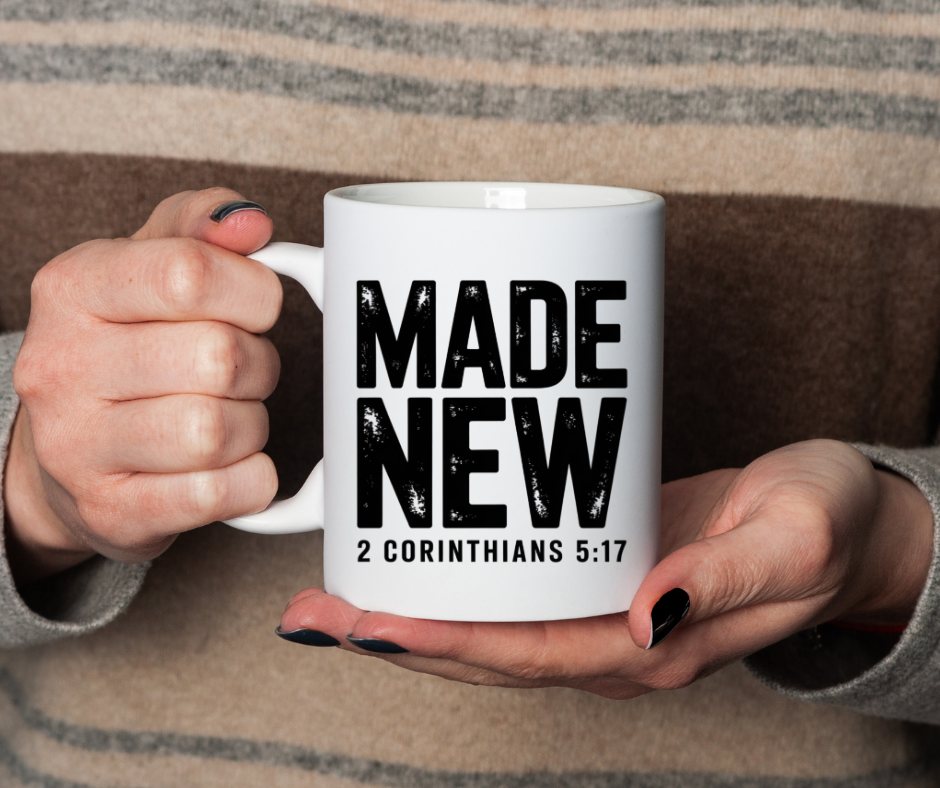A simple, faith forward mug that speaks hope with every sip. This Faith Culture ceramic accent mug features bold distressed “MADE NEW” lettering with the scripture reference 2 Corinthians 5:17, a quiet declaration of renewal that fits naturally into morning routines, prayer time, Bible study, and casual fellowship.
