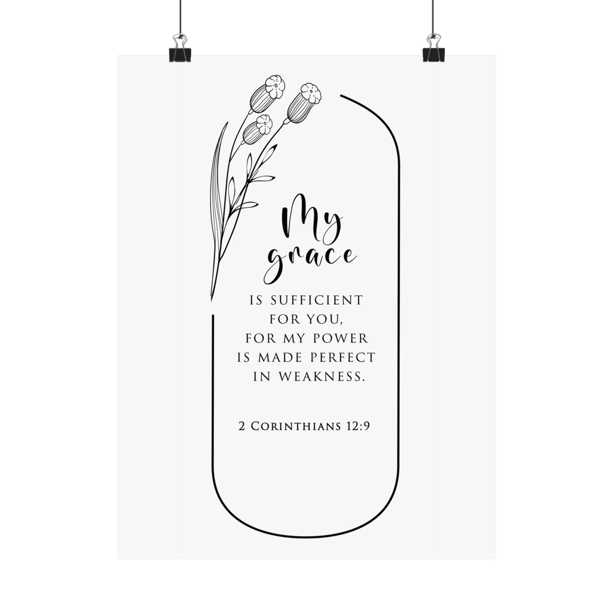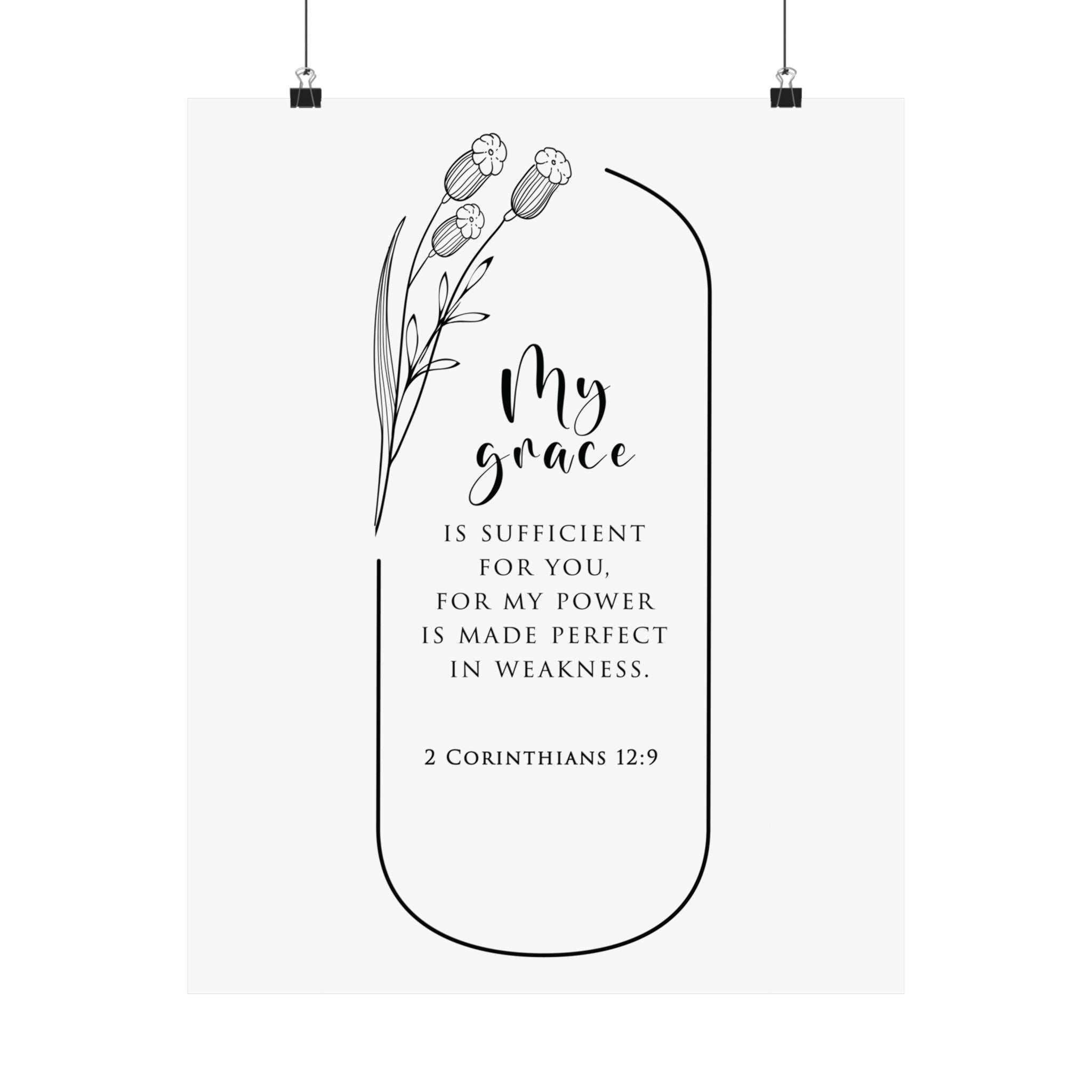 Faith Culture My Grace Is Sufficient 2 Corinthians 12:9 Christian Matte Poster | Minimal Floral Scripture Wall Art Print