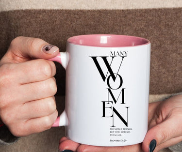 Embrace your day with the Faith Culture - Proverbs 31:29 Christian Accent Coffee Mug, and let each sip remind you of the noble virtues you embody.