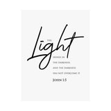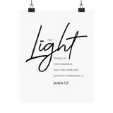 Faith Culture The Light Shines in the Darkness John 1:5 Christian Matte Poster | Minimal Scripture Wall Art Print