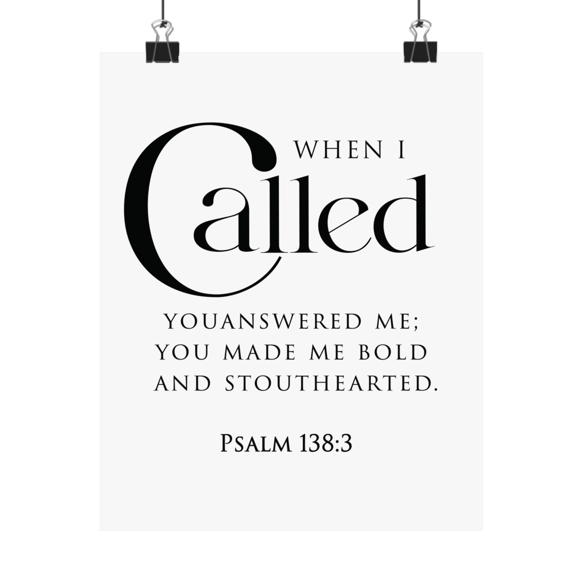 Faith Culture When I Called Psalm 138:3 Christian Matte Poster | Bold and Stouthearted Scripture Wall Art Print