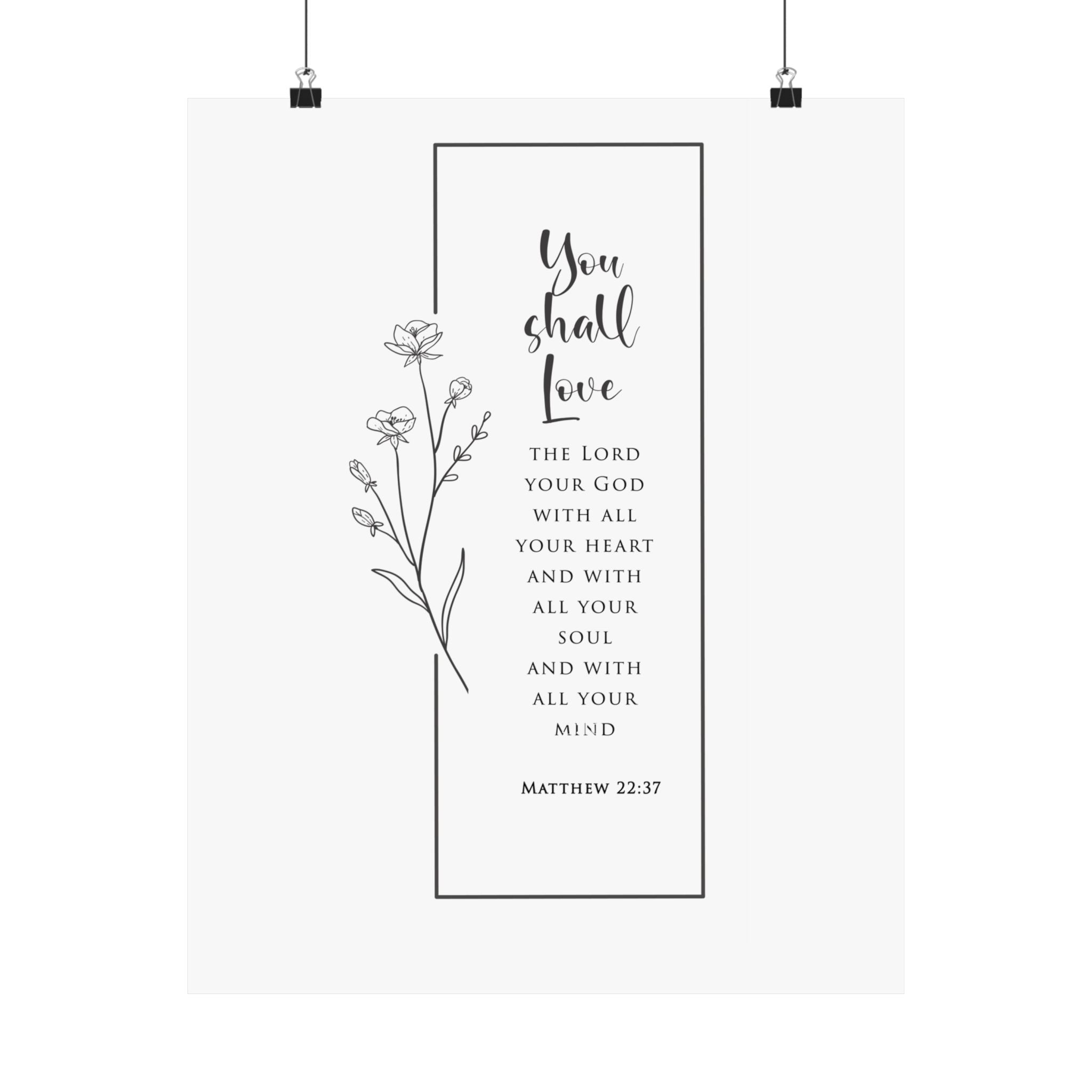 Faith Culture You Shall Love The Lord Your God Matthew 22:37 Christian Matte Poster | Minimal Floral Scripture Wall Art Print